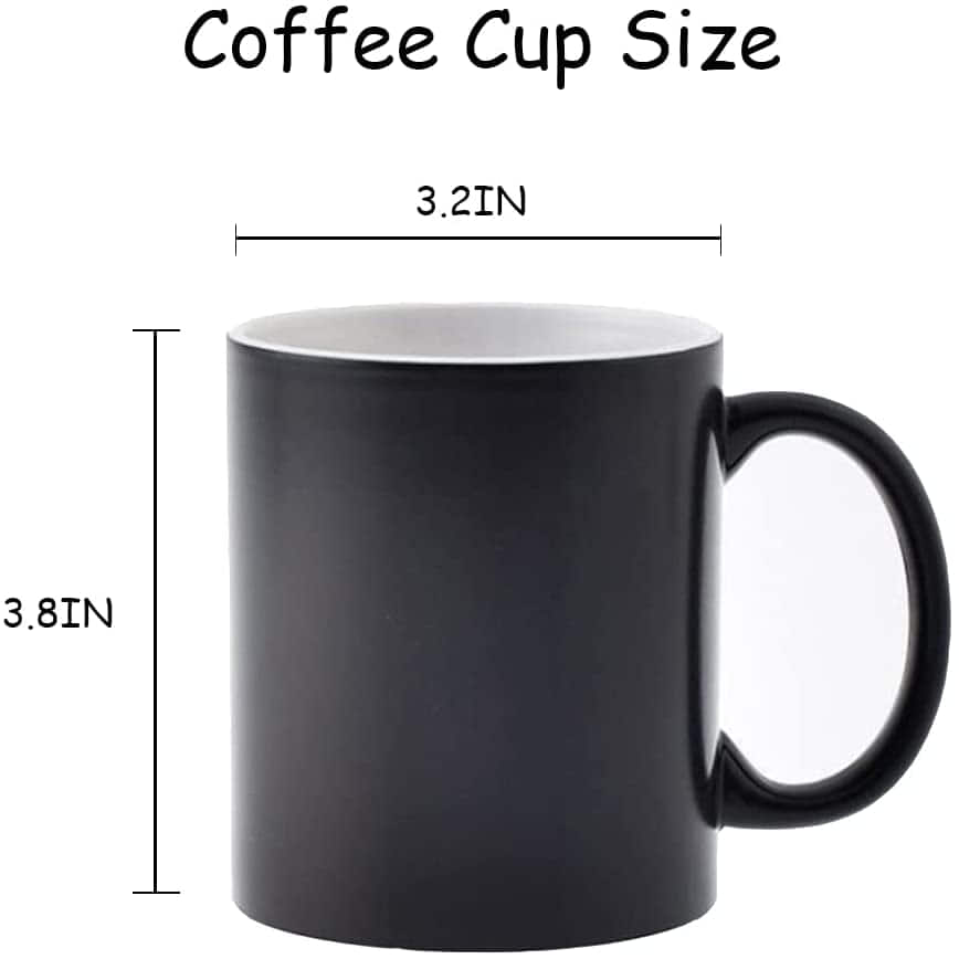 - The mug is black but shows the image when hot liquid is poured into it.